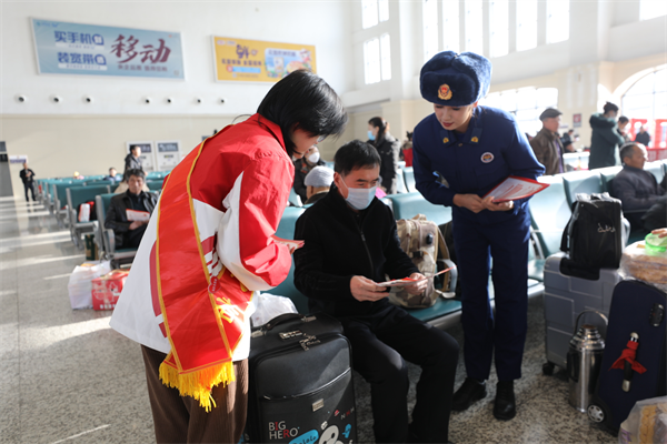 阿克蘇地區消防救援支隊聯合大學生西部計劃志愿者,組成消防志愿者小分隊走進火車站,長途汽車客運站,開展“溫暖回鄉路,消防伴我行”春運消防宣傳活動。大家針對客流量大、行李多、人員密集等特點,在各售票廳、候車室、進出站口等地發放宣傳彩頁,講解消防安全知識,并協助查找消防安全隱患。