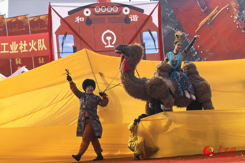 “行進的中歐班列”亮相烏魯木齊社火展演。人民網記者 韓婷攝