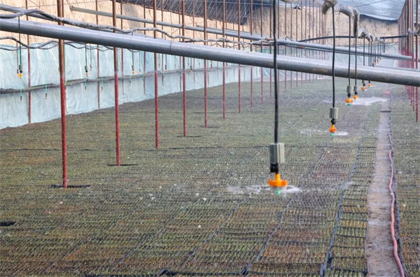 在方宗福的育苗大棚內,自動噴淋設施正在工作。