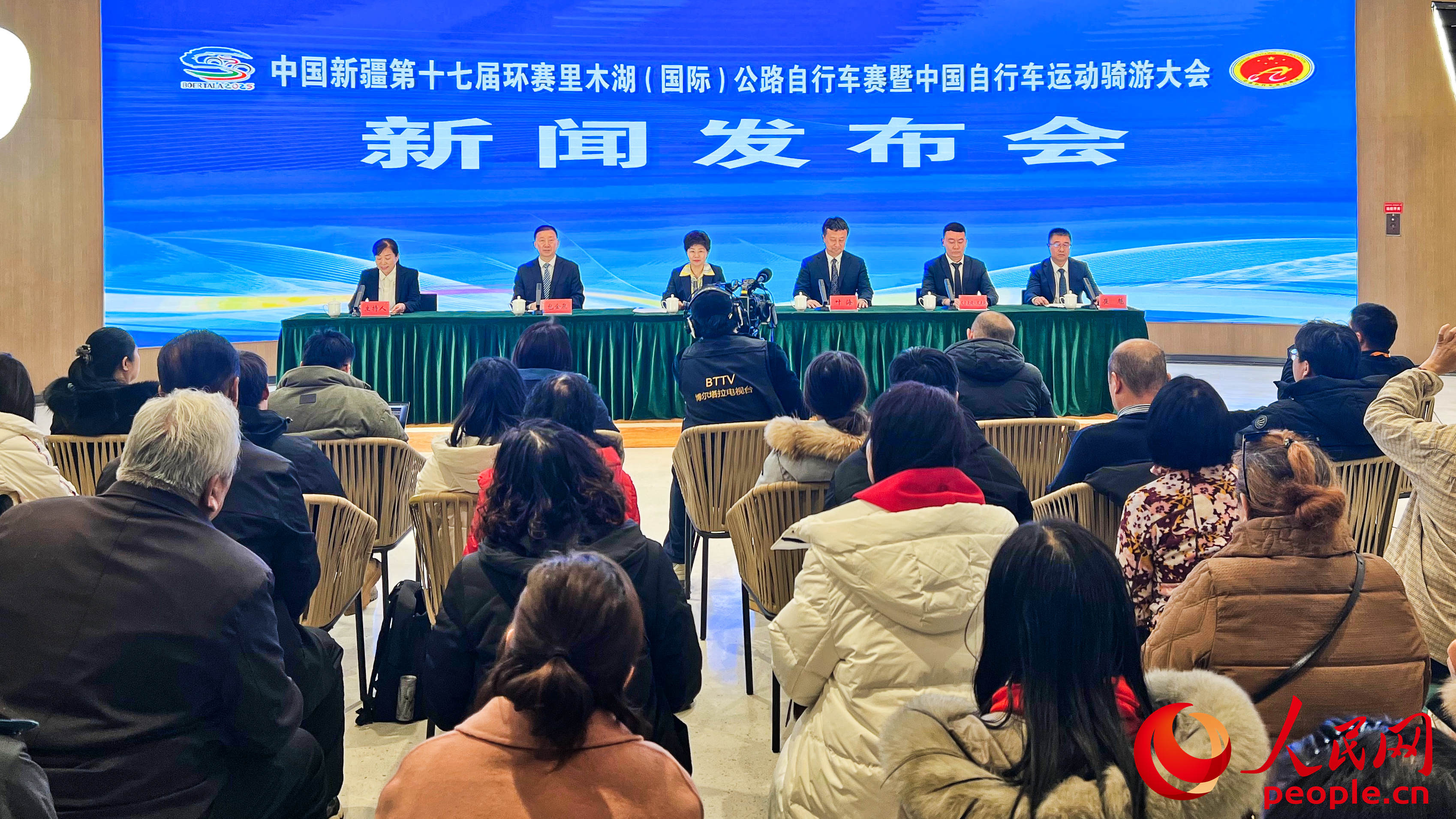 近日,中國新疆第十七屆環賽里木湖(國際)公路自行車賽暨中國自行車運動騎游大會新聞發布會在博州賽里木湖景區游客中心召開。本屆賽事將于5月31日至6月4日在博州境內舉行,共5個賽段,屆時將有來自國內外的60余支專業車隊、400余名運動員和千名大眾騎游選手參賽。