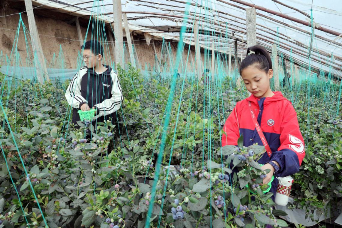 市民們手提果籃,穿梭于藍莓樹間。有的俯身采摘那一顆顆鮮嫩多汁的藍莓,有的拿著手機以藍莓樹為背景,擺出各種姿勢拍照打卡,歡聲笑語在大棚內回蕩。