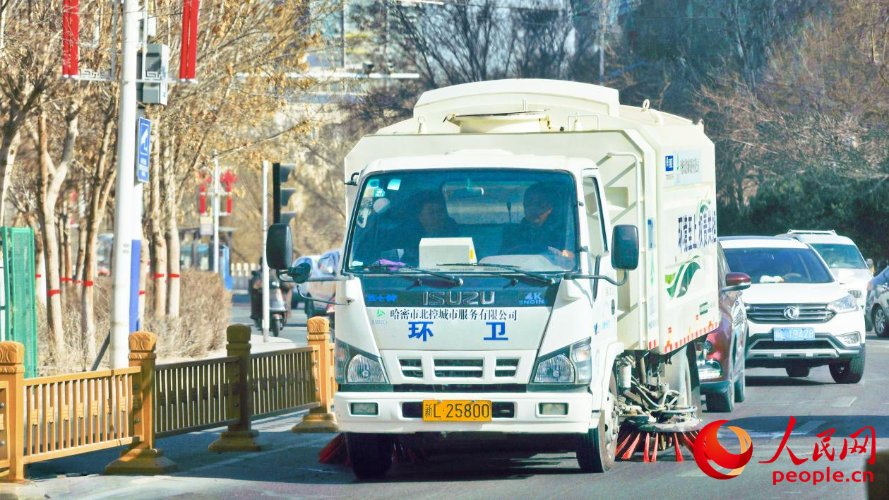 環衛車輛正在對城市道路進行清掃。人民網 李欣洋攝