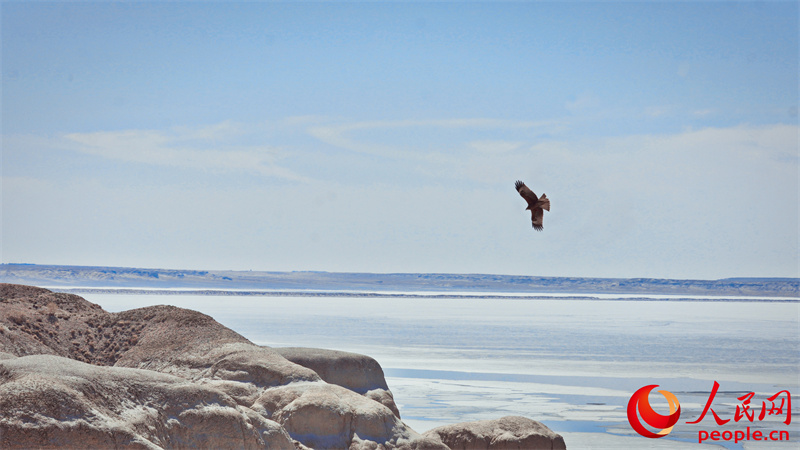 開湖季不僅意味著自然景觀的變換,更是烏倫古湖生態復蘇的關鍵節點。湖水融化后,魚類資源愈發活躍,為眾多候鳥提供了豐富的食物來源。烏倫古湖作為全國十大淡水湖之一,濕地總面積十萬余公頃,濕地率達86.97%,是眾多鳥類飛越天山和阿爾泰山的 “能量補給站”。(李欣洋)