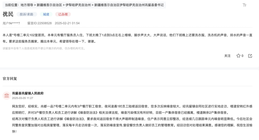 辦實事丨還“靜”于民!新疆兩地快速解決噪音擾民問題