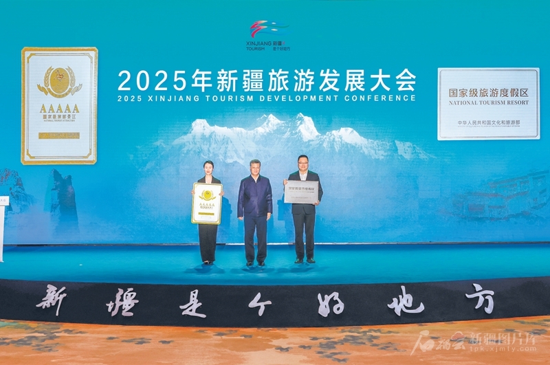 5月25日,新疆維吾爾自治區和兵團在阿克蘇地區庫車市聯合召開2025年新疆旅游發展大會。自治區黨委書記、兵團黨委第一書記、第一政委馬興瑞出席會議,并為2024年獲評國家5A級旅游景區的天山托木爾景區、獲評國家級旅游度假區的青格達湖旅游度假區授牌。