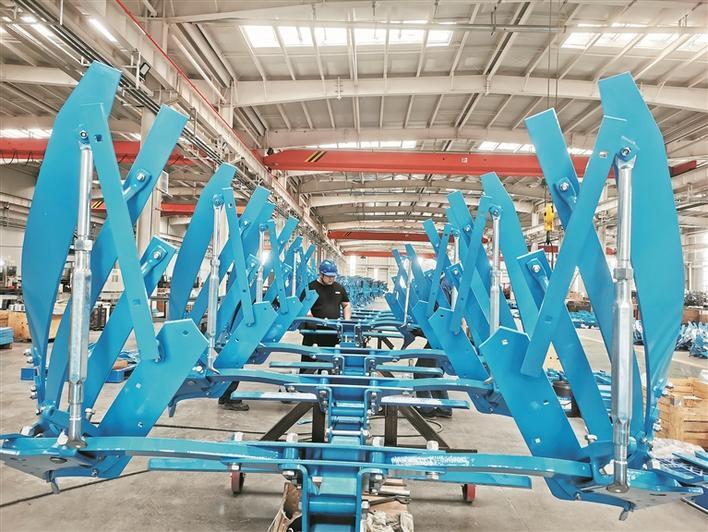 石河子市天山機械制造有限公司生產車間內,工人在檢測農機設備配件(資料圖片)。趙海忠 攝