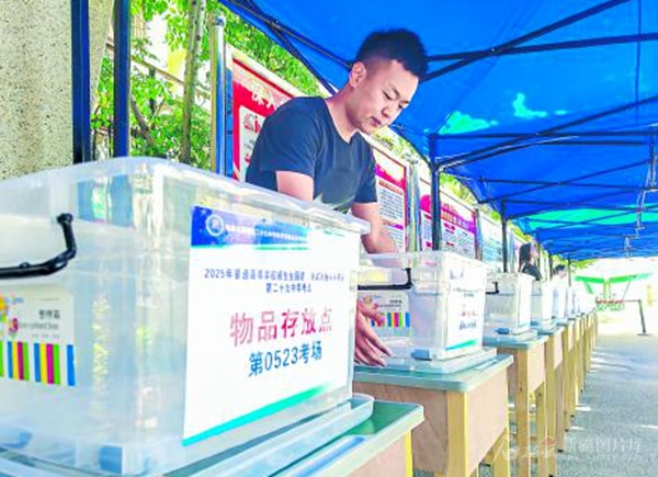 6月5日,烏魯木齊市第二十九中學教師在布置物品存放點。作為高考考點,該校已做好各項準備工作,全力保障高考平穩有序進行。石榴云/新疆日報記者鄒懿攝