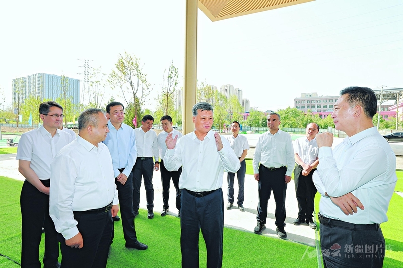 6月15日,自治區黨委書記馬興瑞、自治區主席艾爾肯·吐尼亞孜在新疆國際醫療中心調研。這是馬興瑞、艾爾肯·吐尼亞孜來到建設現場,察看整體情況,詳細聽取一期項目推進和二期項目規劃情況介紹。 石榴云/新疆日報記者崔志堅攝