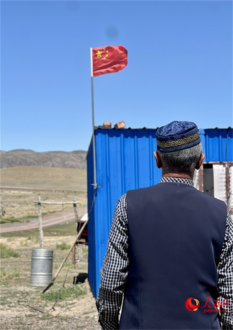 短暫交談后,已是晌午。巴合加那提走出氈房,帶著記者參觀他的牧場?!斑@些都是黨和國家為我們修建的房屋,有水有電有網絡。黨和國家對我們這么好,日子要過不好,可真是我們的問題?!卑秃霞幽翘嵋贿呎f,一邊調試著廣播設備。數秒過后,響亮的《義勇軍進行曲》從喇叭里傳出,響徹整個牧場,在遼闊草原飄蕩?;赝秃霞幽翘?,他挺直身子,面向國旗,眼神堅毅。