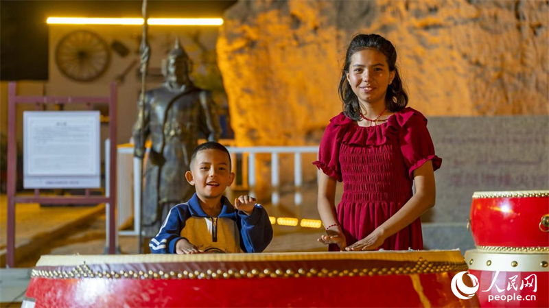 游客們感受龜茲文化魅力。人民網記者 唐宋攝