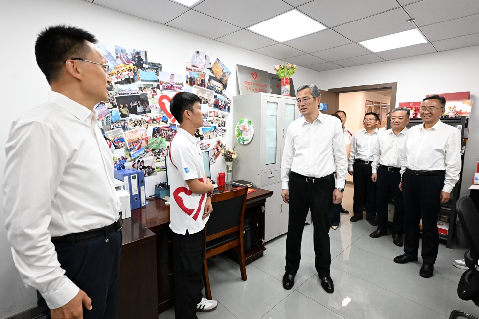 8月20日,自治區黨委副書記、兵團黨委書記、政委何忠友在兵團團委調研,深入有關部室,詳細詢問大學生志愿服務西部計劃等工作開展情況。兵團日報全媒體記者 張鑫攝