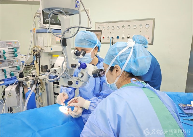 8月21日,在阿克蘇地區第一人民醫院手術室,浙江援疆專家帶領本地醫生正在做斜視矯正手術。葉錫挺攝