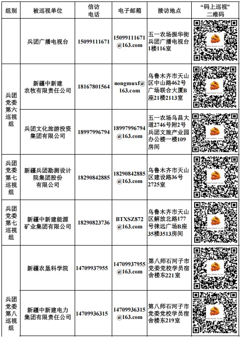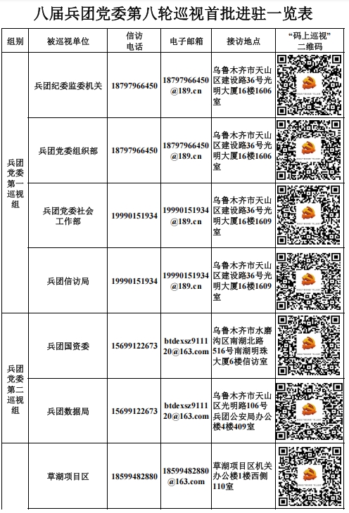 據悉,兵團黨委巡視組將在被巡視單位工作2個月左右,巡視期間設立專門值班電話、電子郵箱和信訪信箱,開通“碼上巡視”舉報平臺,主要受理反映被巡視黨組織領導班子及其成員、下一級黨組織主要負責人問題的來信來電來訪,重點是關于違反政治紀律、組織紀律、廉潔紀律、群眾紀律、工作紀律、生活紀律和中央八項規定精神等方面的舉報和反映。巡視組受理信訪時間截止到2025年11月3日。