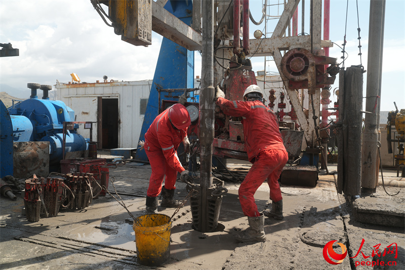 柴探2井,工人們正在提、下鉆。人民網記者 唐宋攝