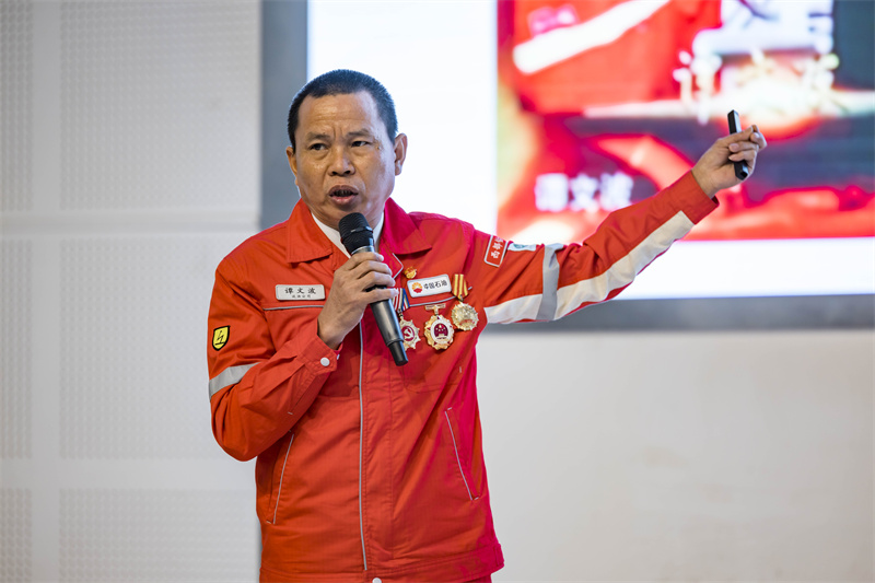 全國勞動模范,2018年“大國工匠年度人物”、中國石油西部鉆探工程有限公司試油公司集團首席技師譚文波分享成長經歷。穆拉提江?沙吾爾丁攝