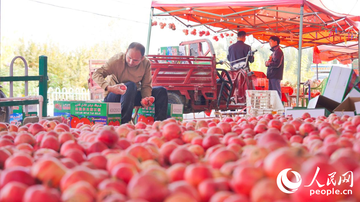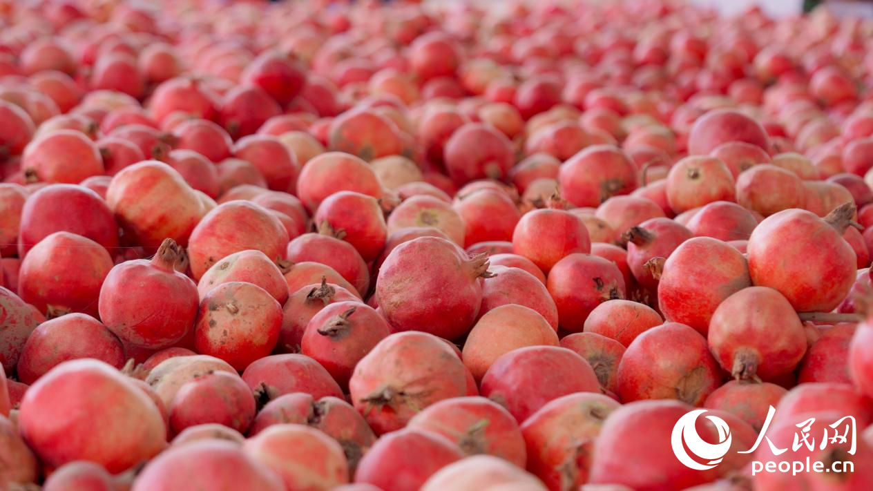小石榴,大產業。金秋時節,塔克拉瑪干沙漠南緣,新疆策勒縣策勒鄉石榴籽村石榴飄香,村民臉上洋溢著豐收的喜悅。
