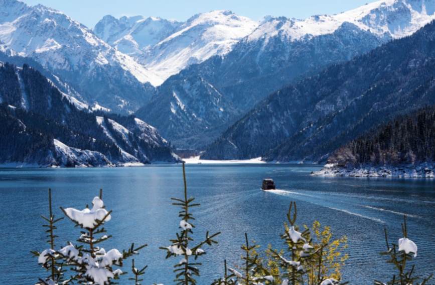 云杉傲雪,瑤池揚波,天山天池美不勝收。孫國富 攝