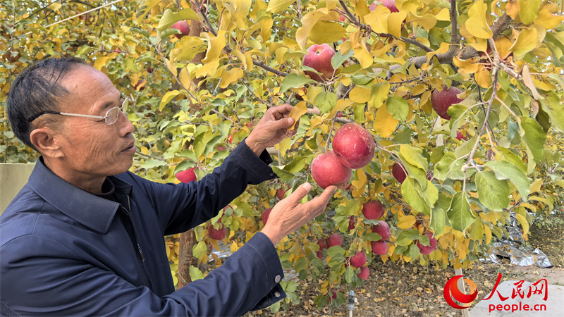 豐慶園農民專業合作社負責人杜民超介紹紅旗坡蘋果的特點。人民網記者 陳新輝攝
