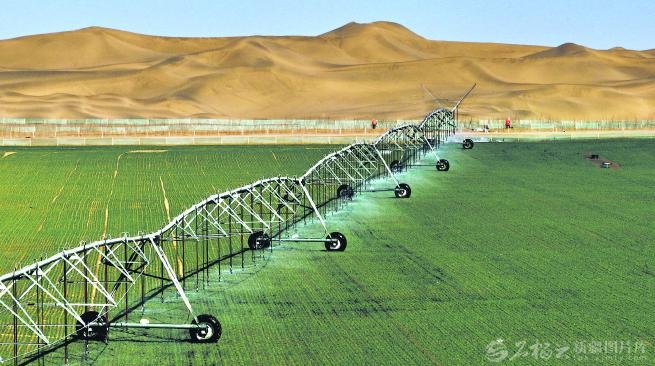 今年,兵團第十四師224團在塔克拉瑪干沙漠邊緣開墾出7.38萬畝土地,種植小麥、玉米、打瓜、食葵等各類農作物。這是麥田里自壓式節水灌溉設施正在澆灌(11月26日攝)。王志清攝